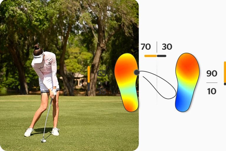 It’s a pair of pressure-sensing insoles that slip into your golf shoes.